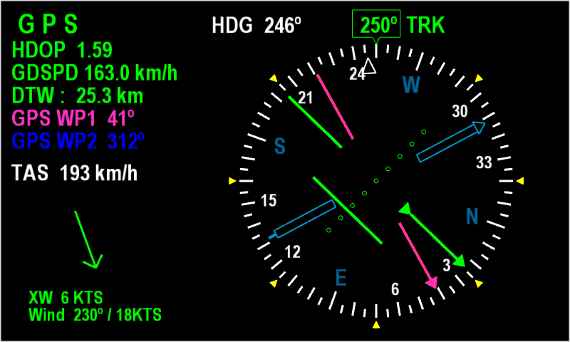 It also contains an internal world magnetic model that allows it to calculate the local magnetic deviation and dip. The Ultra EFIS can calculate current position and ground speed even in the absence of GPS.
